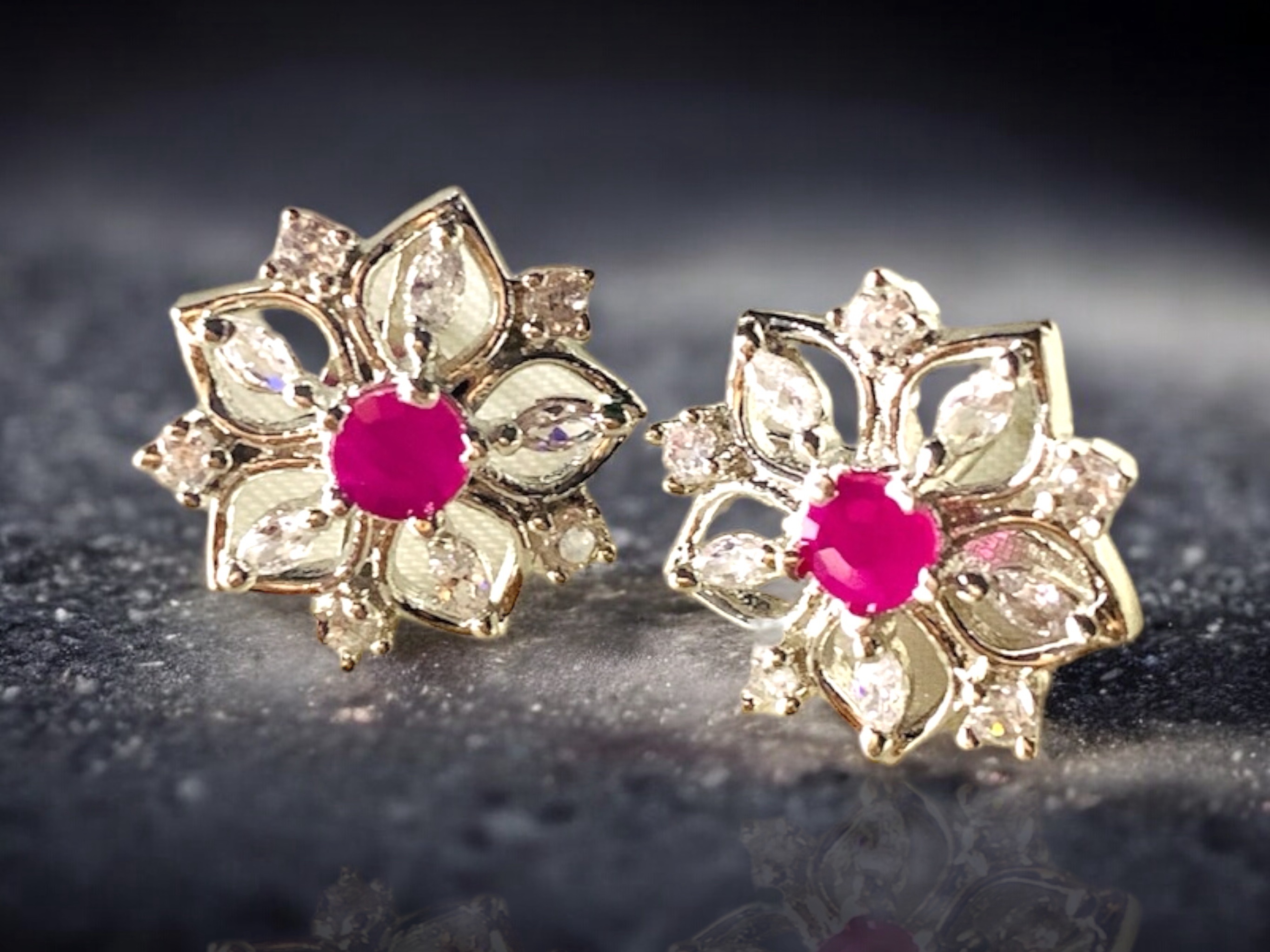 Floral Ruby Blossom Sterling Silver Earrings