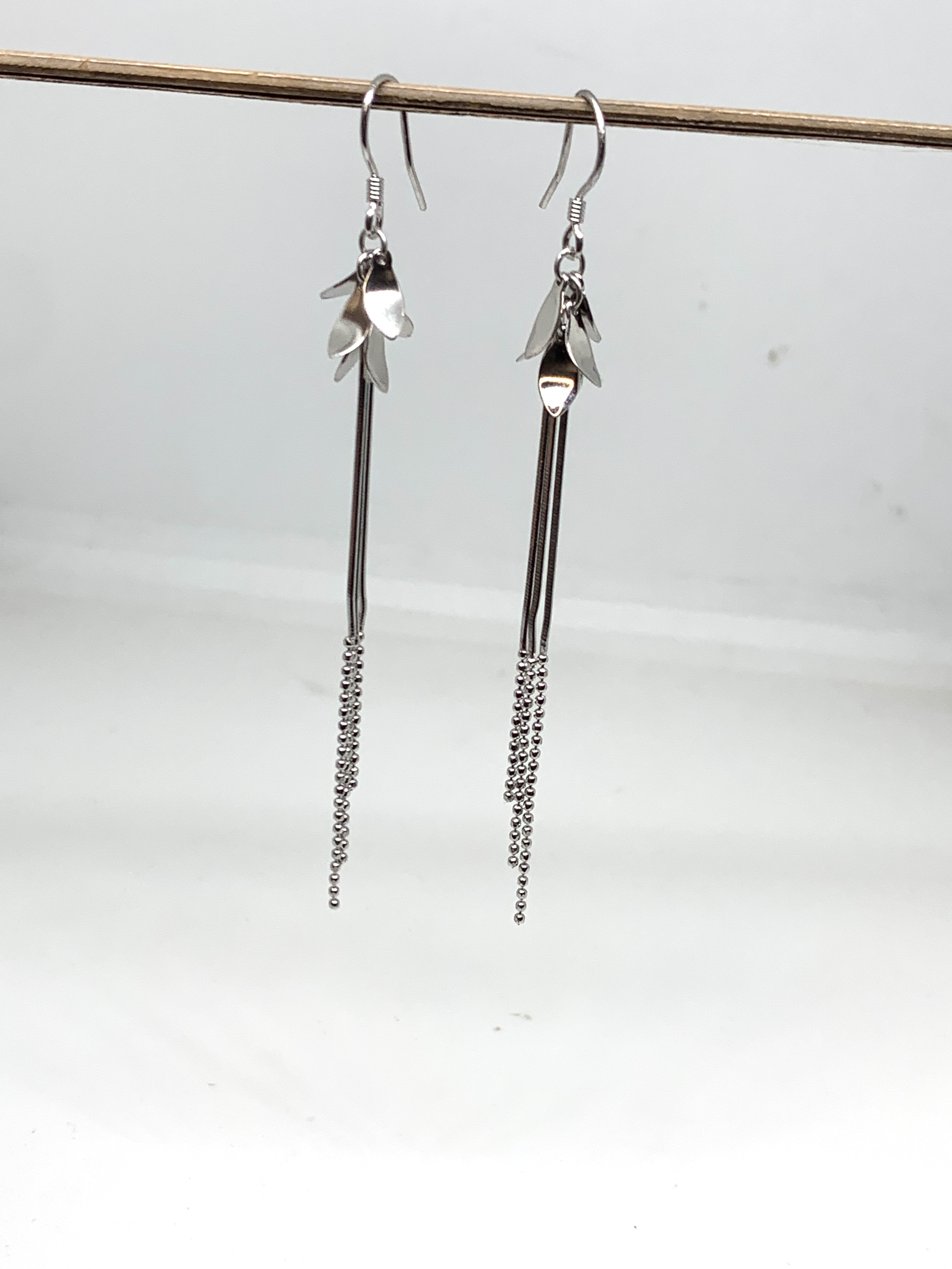 Elegant Leaf Tassel Sterling Silver Dangle Earrings