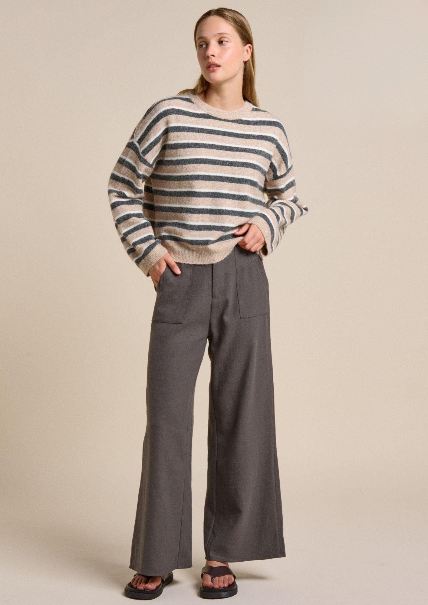 Crisp, modern, and thoughtfully designed, this cotton blend Little Lies Button Back Shirt in a navy stripe brings a fresh twist to a timeless classic. Made from breathable cotton, it features a clean navy stripe pattern that feels both elevated and versatile. The standout detail is its dual-button design, with functional buttons at both the front and back—offering styling flexibility and a contemporary edge. Cut in a relaxed profile, it drapes effortlessly for all-day comfort while maintaining a refined look…offering a unique, fashion-forward statement. Fabric: 45% Cotton 55% Polyester Size Guide: Small: Size 8-10 | Medium: Size 10-12 | Large: Size 12-14